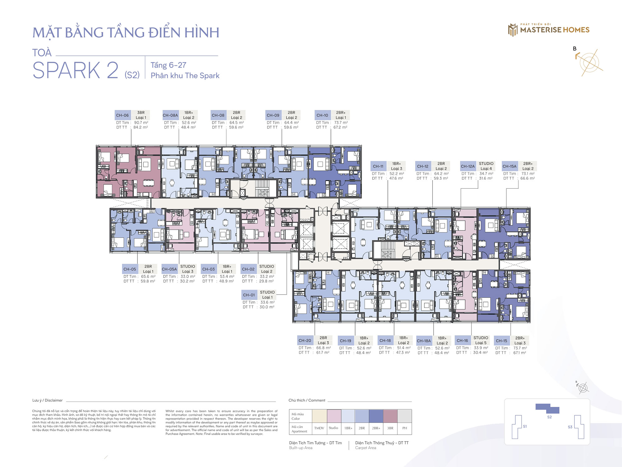 Các căn hộ tại Lumiere Cổ Loa đều thiết kế từ 01 đến 03 phòng ngủ với diện tích linh hoạt từ 27m2 – 90.3m2. Dưới đây là mặt bằng chi tiết các căn hộ từ 01 đến 03 ngủ.