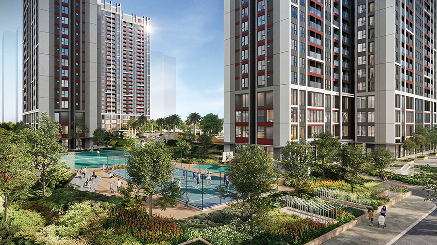 🔸 Quy mô: 3 tòa căn hộ cao 28 tầng, 2 hầm đỗ xe thông nhau, đáp ứng 100% nhu cầu chỗ đỗ xe của cư dân